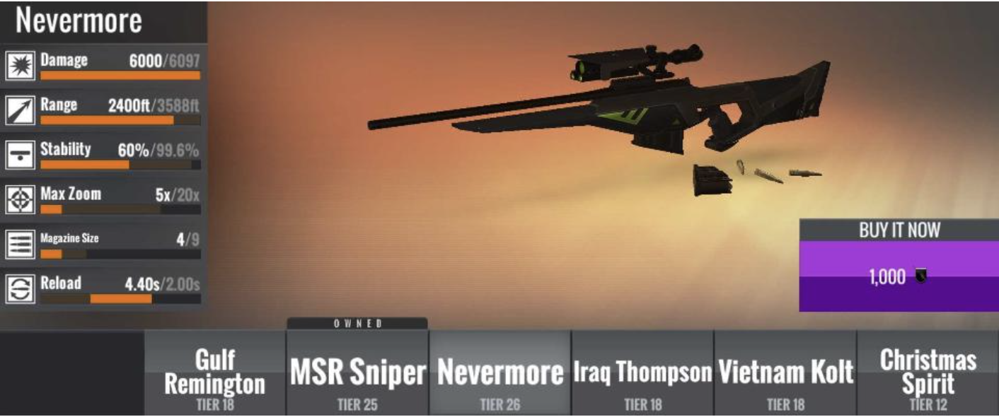 Event gear and weapons such as the NEVERMORE gun, and the CROW gear set can be gained by participating in one of our many rotating live events, as well as purchased directly from the package store during exclusive limited time offers.